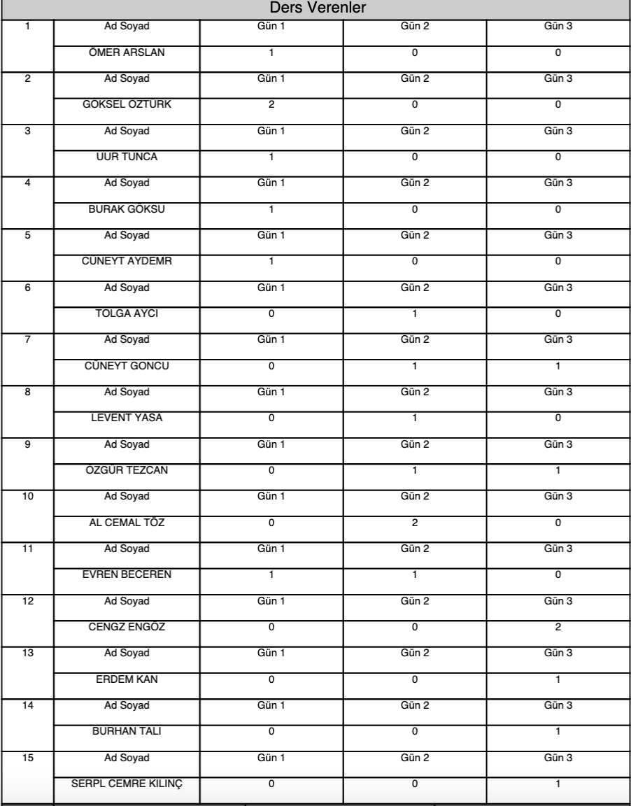 • Eğitmenler